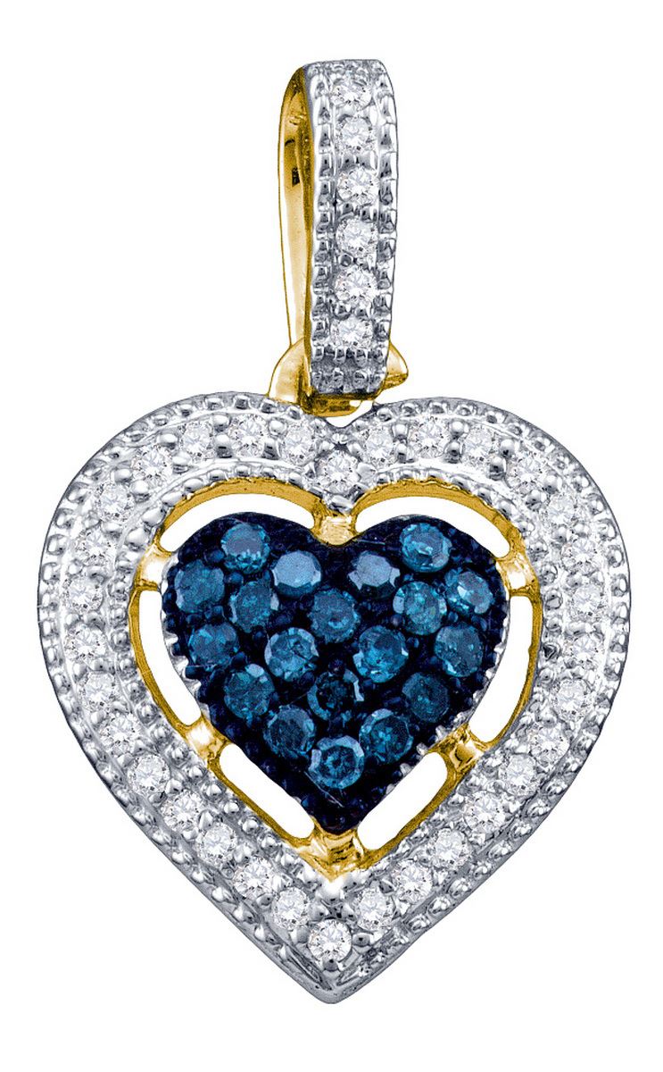 REF-19X9F ---- 0.2 CTW Blue Colored Natural Diamond Heart Cluster Pendant 10K Yellow Gold - SKU: GD60795