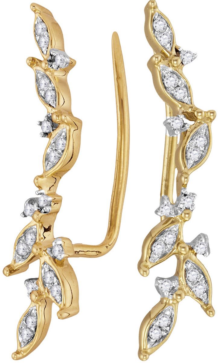 REF-25W2H ---- 0.2 CTW Natural Diamond Climber Earrings 10K Yellow Gold - SKU: GD114989