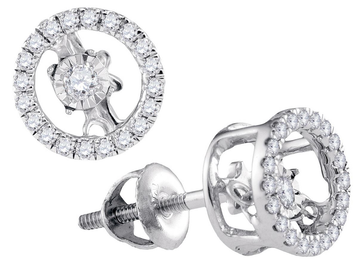 REF-40T2K ---- 0.2 CTW Natural Diamond Moving Twinkle Solitaire Stud Screwback Earrings 10K White Gold - SKU: GD98734