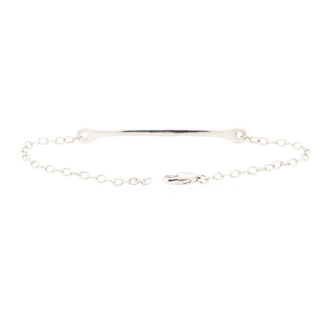 One electronically tested 14KT white gold lady's combination cast & assembled fashion bar bracelet with a lobster claw clasp with a bright polish finish. The featured lady's bracelet measures approximately seven inches in length. Identified with markings of '585'. Condition is new, good workmanship. Containing: Thirty-Four prong set round brilliant cut diamonds, measuring 1.20 - 1.10 x 0.71mm (depth est.) approximate total weight of 34 Stones = 0.20ct. Graded in the setting. Color H - I Clarity SI-1 to SI-2 Cut Good. Total Weight of Diamonds 0.20ct.. Total Weight of Bracelet 3.50gm GAS Appraised at $1200.00. GAS Appraised.
