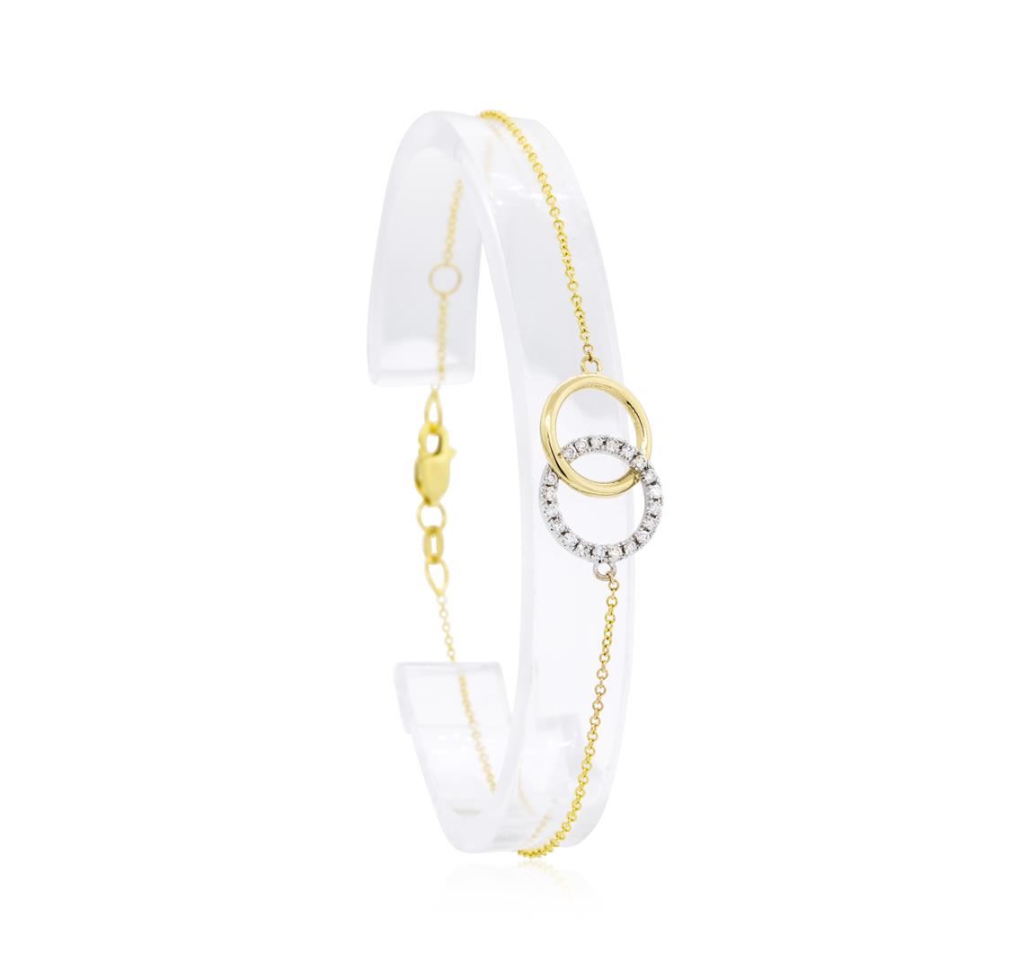 One lady's bracelet featuring: 14KT yellow and white gold weighing 2.1 grams containing diamonds weighing 0.20ctw. The bracelet is adjustable and can be worn between six and a half and  seven inches in length.