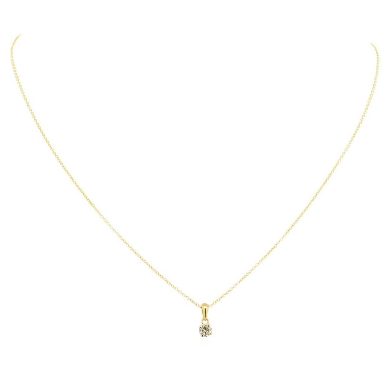 One pendant with chain featuring: 14KT yellow gold weighing 1.4 grams containing one diamond weighing 0.20ct. The pendant has a chain measuring approximately sixteen inches in length.
