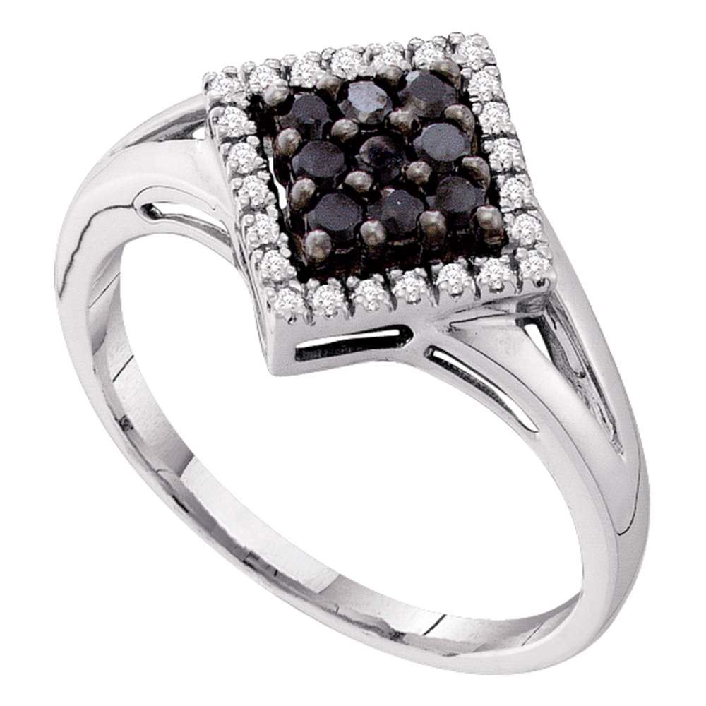REF-14W9K- SKU: GD57499 ---- 0.20 CTW Black Color Diamond Diagonal Square Cluster Ring 10KT White Gold