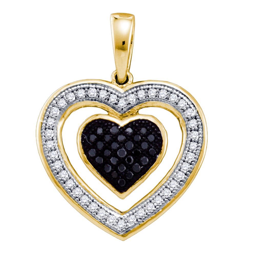 REF-19M4H- SKU: GD65030 ---- 0.20 CTW Black Color Diamond Framed Heart Pendant 10KT Yellow Gold