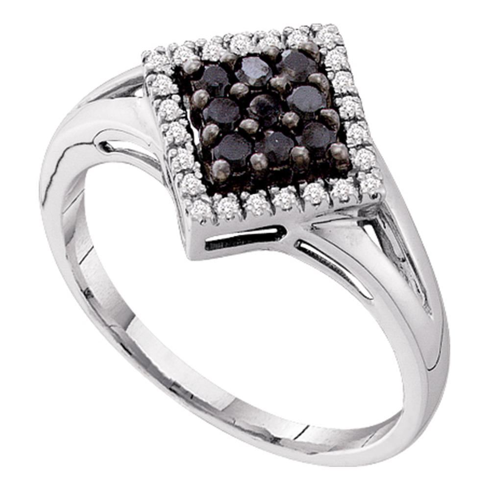 REF-22W4K- SKU: GD66720 ---- 0.20 CTW Black Color Diamond Square Cluster Ring 14KT White Gold