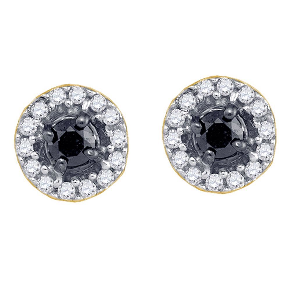 REF-12N8F- SKU: GD83420 ---- 0.20 CTW Black Color Diamond Stud Screwback Earrings 10KT Yellow Gold