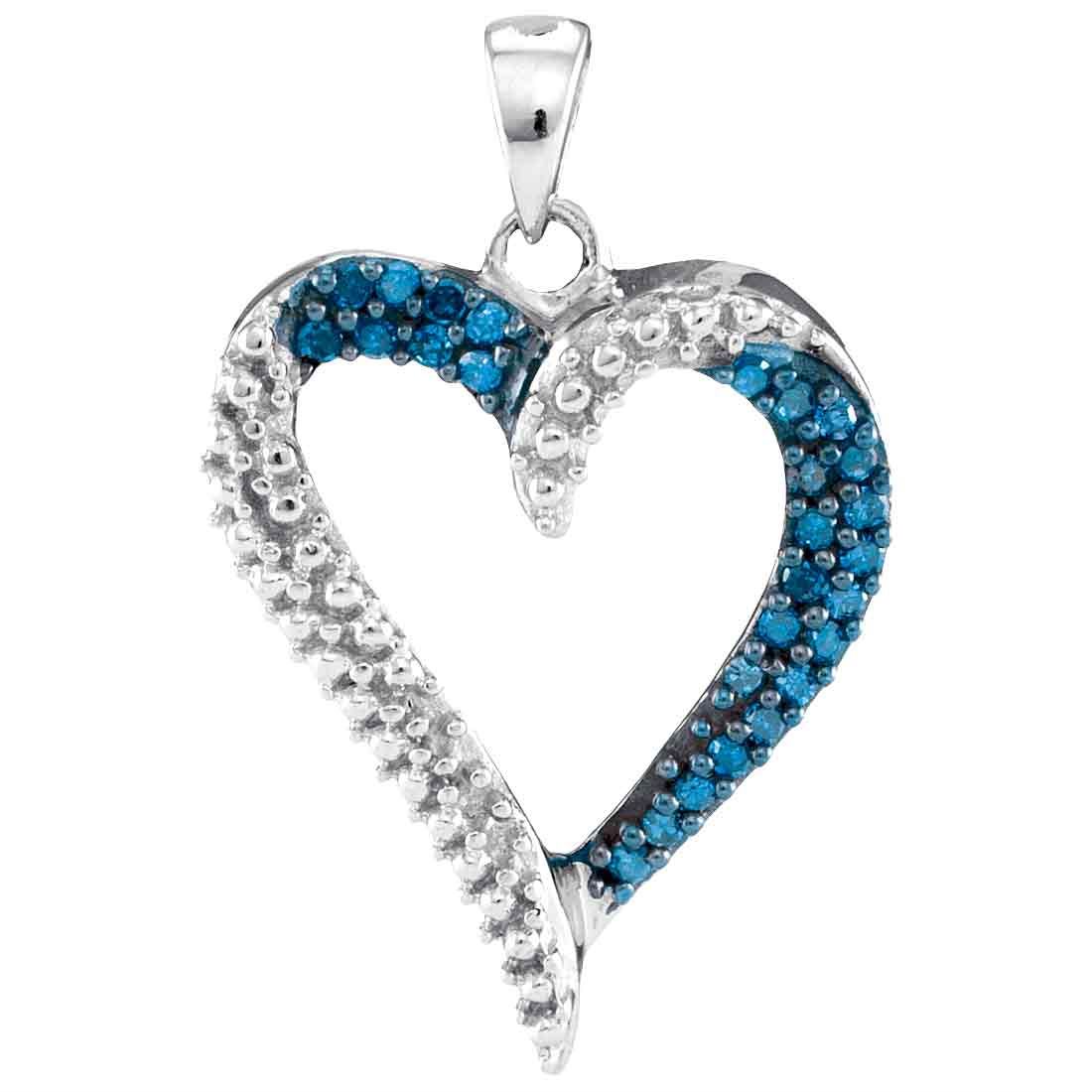 REF-14W9K- SKU: GD94847 ---- 0.20 CTW Blue Color Diamond Heart Pendant 10KT White Gold