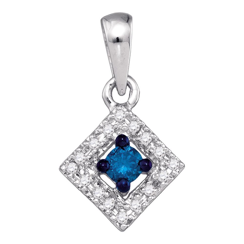 REF-14M9H- SKU: GD75035 ---- 0.20 CTW Blue Color Diamond Square Pendant 10KT White Gold