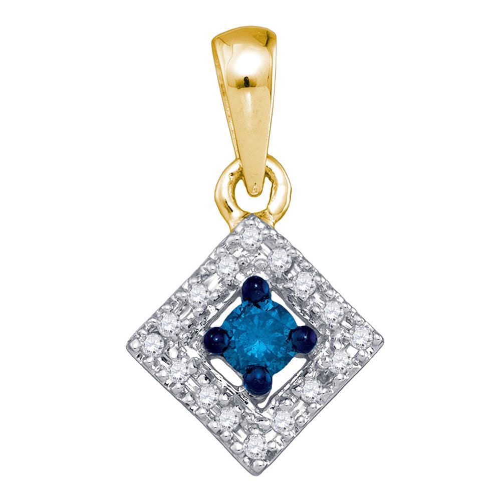 REF-14W9K- SKU: GD75856 ---- 0.20 CTW Blue Color Diamond Square Pendant 10KT Yellow Gold