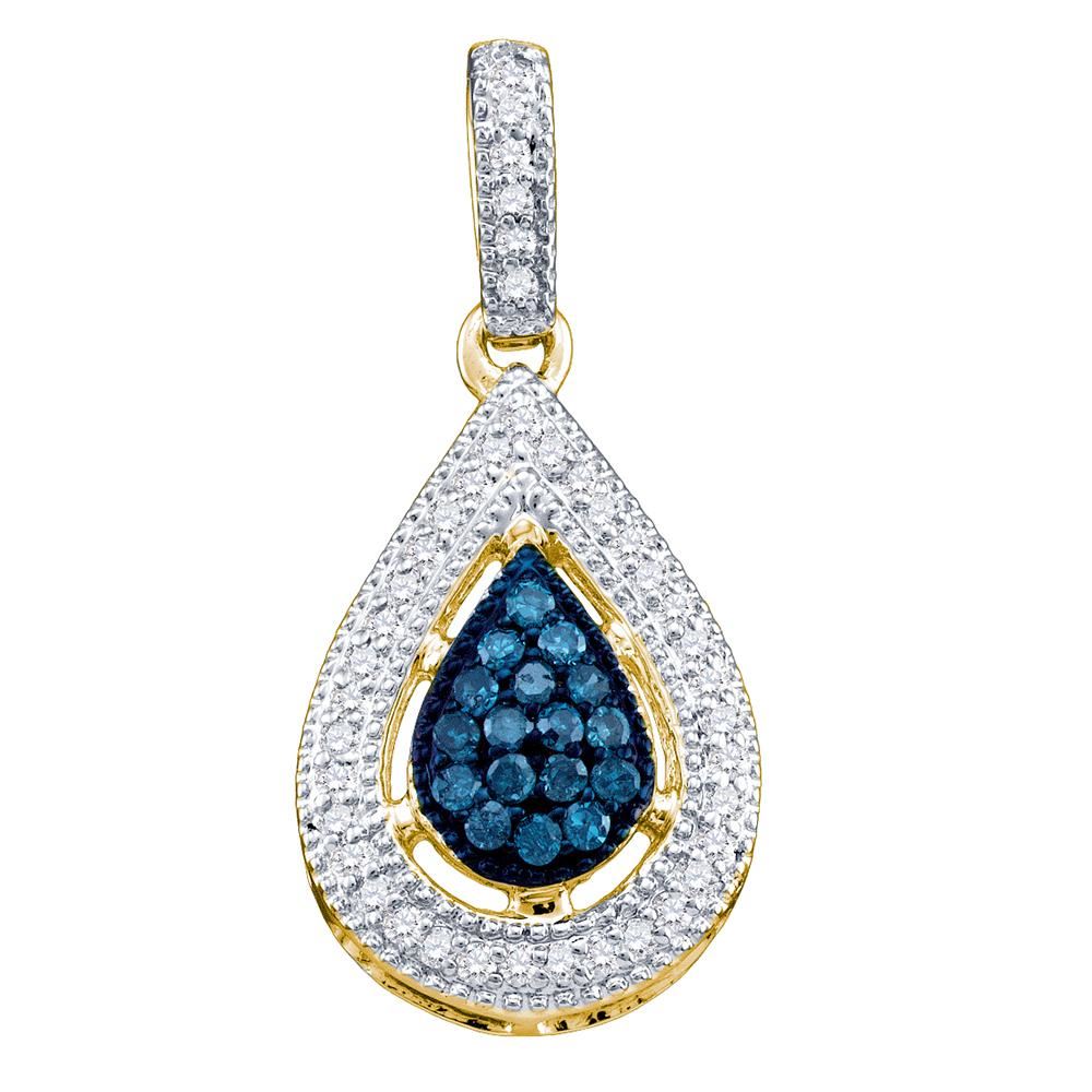 REF-16X4Y- SKU: GD60796 ---- 0.20 CTW Blue Color Diamond Teardrop Dangle Pendant 10KT Yellow Gold