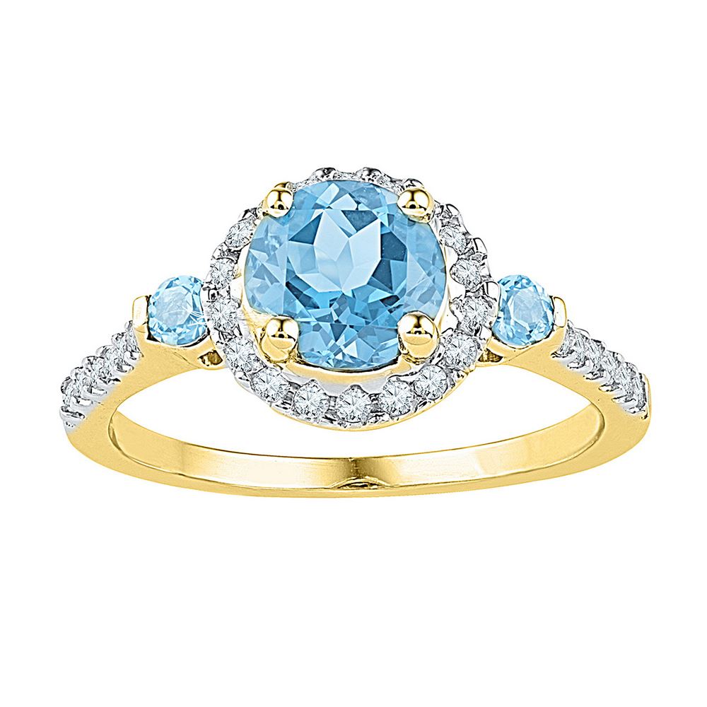 REF-30W2K- SKU: GD101186 ---- 0.20 CTW Created Blue Topaz Solitaire Diamond Ring 10KT Yellow Gold