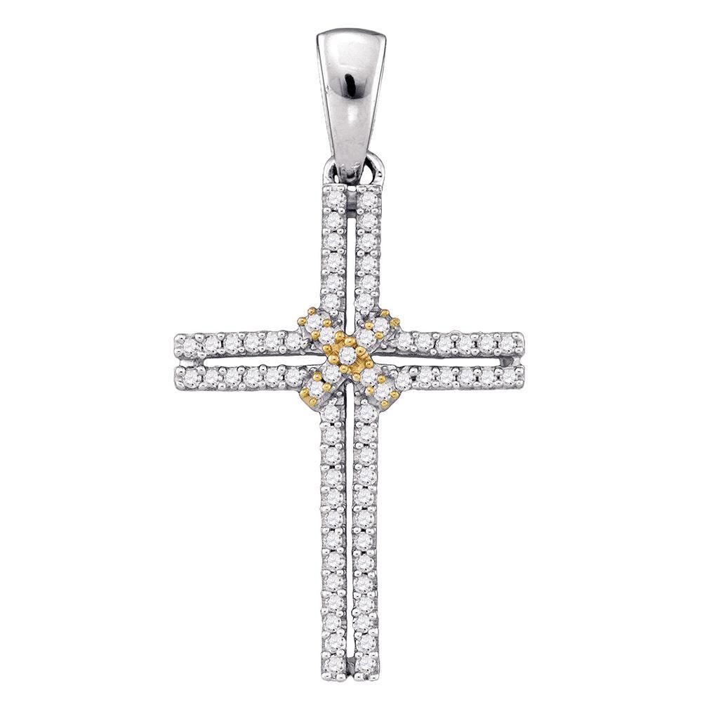 0.20 CTW Diamond Bound Cross Religious Pendant 10kt Two-tone Gold - SKU: GD81445
