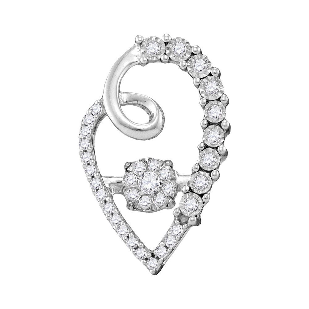 REF-31M4H- SKU: GD110132 ---- 0.20 CTW Diamond Cluster Heart Pendant 10KT White Gold