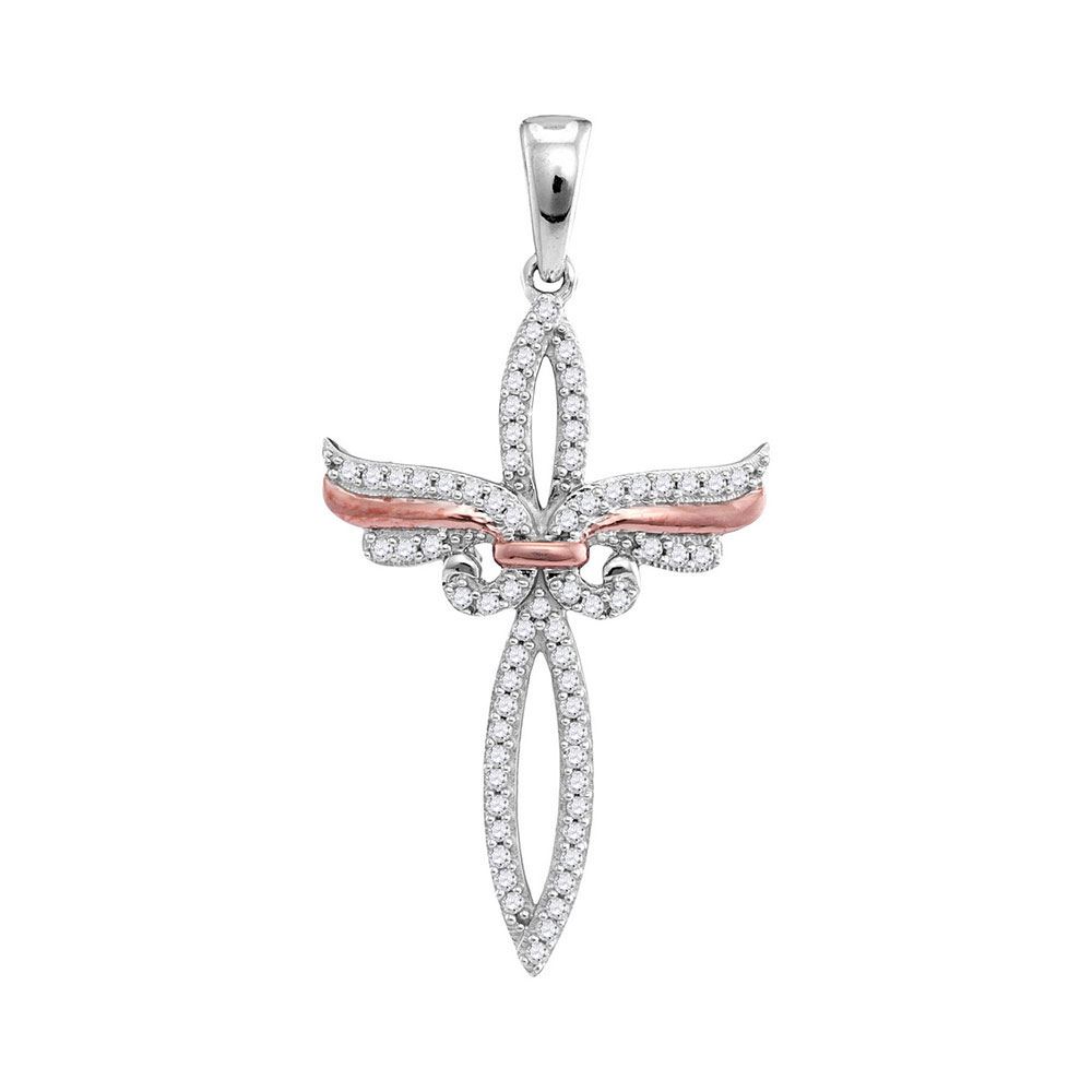 REF-18N2F- SKU: GD108287 ---- 0.20 CTW Diamond Cross Pendant 10KT Two-tone Gold
