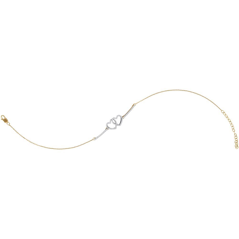 REF-34N4F- SKU: GD115758 ---- 0.20 CTW Diamond Double Linked Heart Bracelet 10KT Yellow Gold