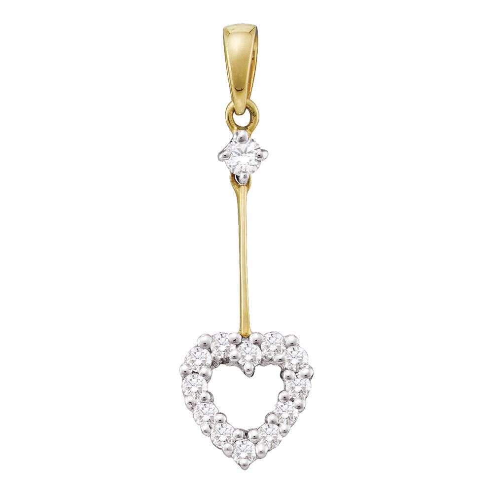 REF-19X4Y- SKU: GD28244 ---- 0.20 CTW Diamond Heart Outline Dangle Pendant 14KT Yellow Gold