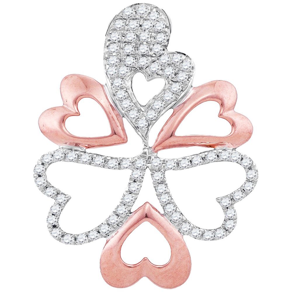 REF-24K2W- SKU: GD93478 ---- 0.20 CTW Diamond Oval Heart Cluster Pendant 10KT Two-tone Gold