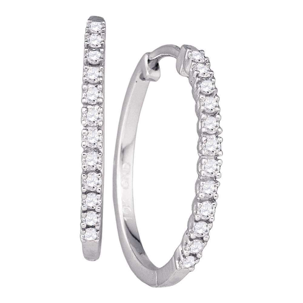 REF-22X4Y- SKU: GD46091 ---- 0.20 CTW Diamond Single Row Hoop Earrings 10KT White Gold