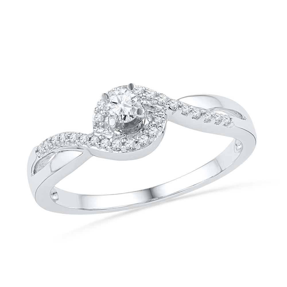 REF-20Y9X- SKU: GD100749 ---- 0.20 CTW Diamond Solitaire Swirl Promise Bridal Ring 10KT White Gold
