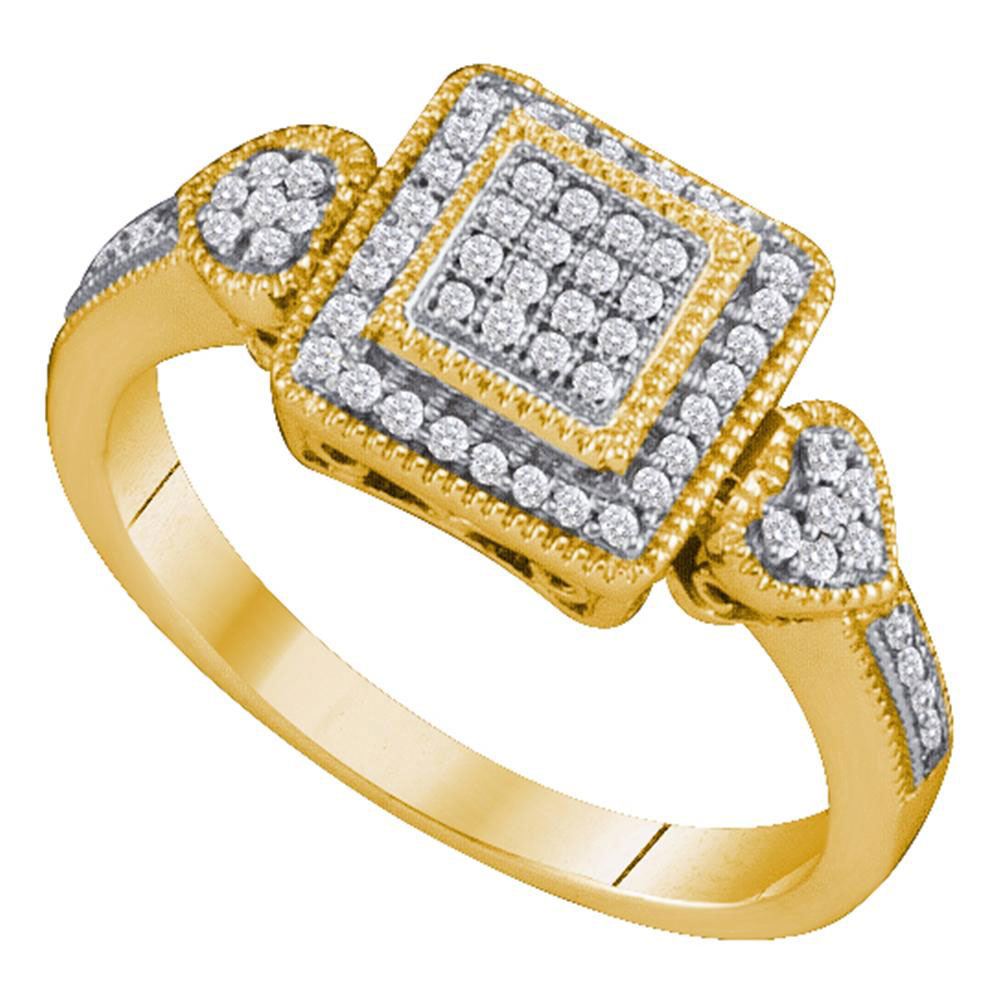 REF-24F2N- SKU: GD64894 ---- 0.20 CTW Diamond Square Cluster Diamond Ring 10KT Yellow Gold