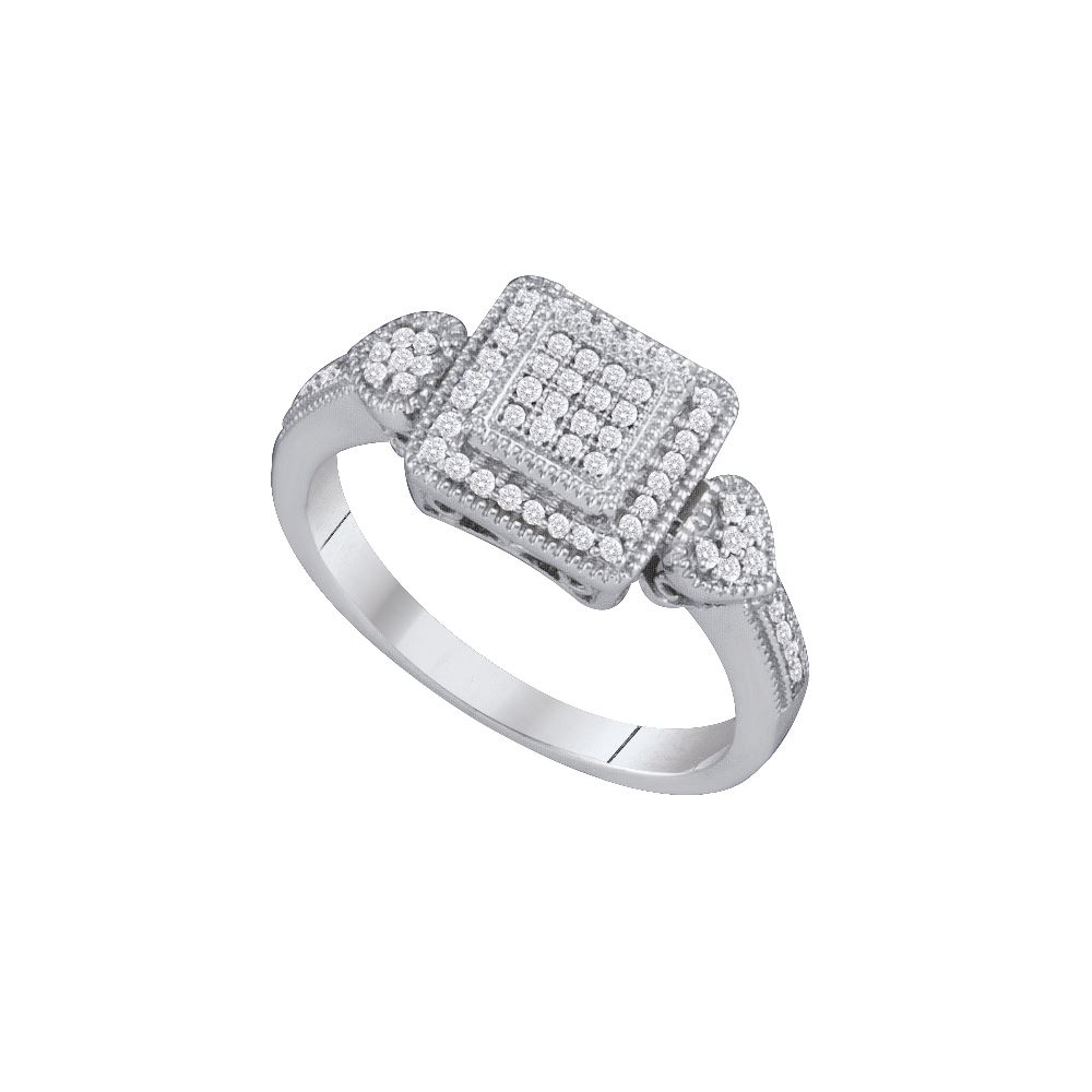 REF-24X2Y- SKU: GD64897 ---- 0.20 CTW Diamond Square Cluster Heart-Ring 10KT White Gold