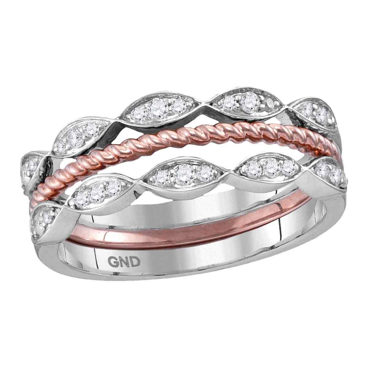 REF-34W4K- SKU: GD114459 ---- 0.20 CTW Diamond Stackable Rope Ring 10KT Two-tone Gold