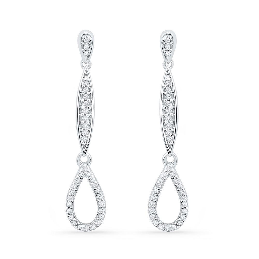 REF-22M4H- SKU: GD101918 ---- 0.20 CTW Diamond Teardrop Dangle Earrings 10KT White Gold