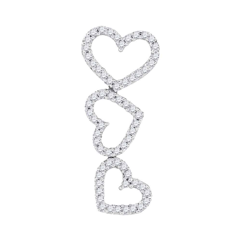 REF-13X4Y- SKU: GD97476 ---- 0.20 CTW Diamond Triple Cascading Heart Outline Pendant 10KT White Gold