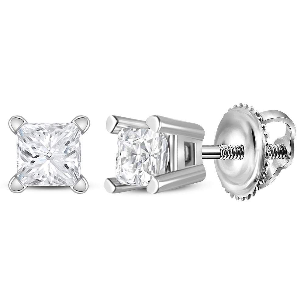 REF-19H4M- SKU: GD51740 ---- 0.20 CTW Princess Diamond Solitaire Stud Earrings 14KT White Gold