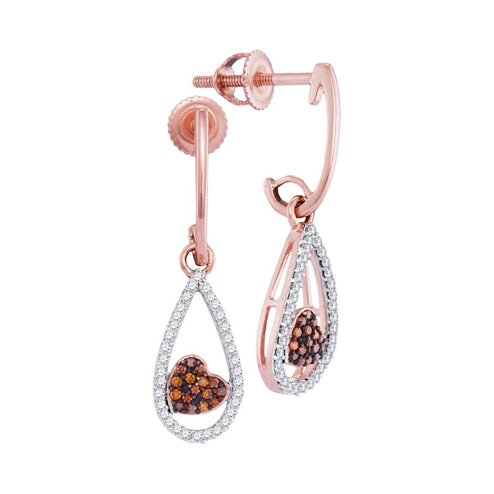 REF-24N2F- SKU: GD98035 ---- 0.20 CTW Red Color Diamond Heart Dangle Earrings 10KT Rose Gold