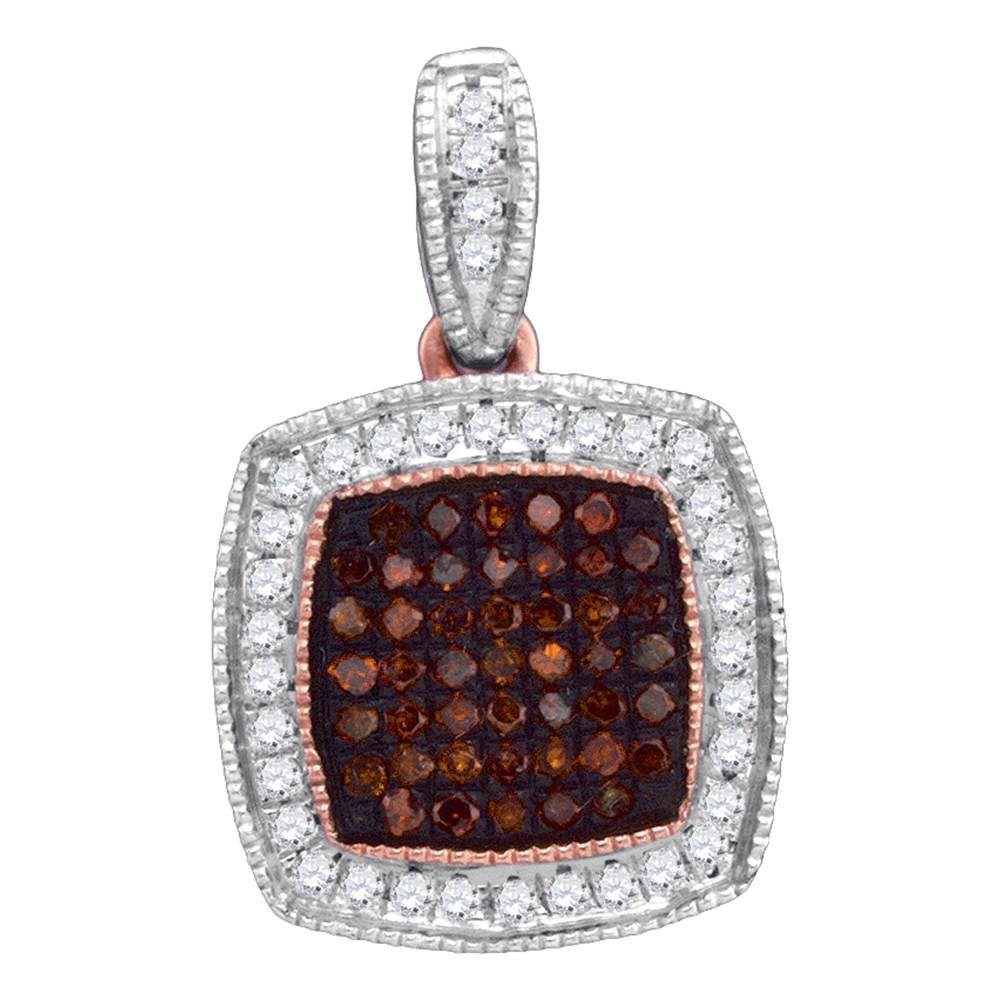 REF-25H4M- SKU: GD89957 ---- 0.20 CTW Red Color Diamond Square Cluster Pendant 10KT Rose Gold