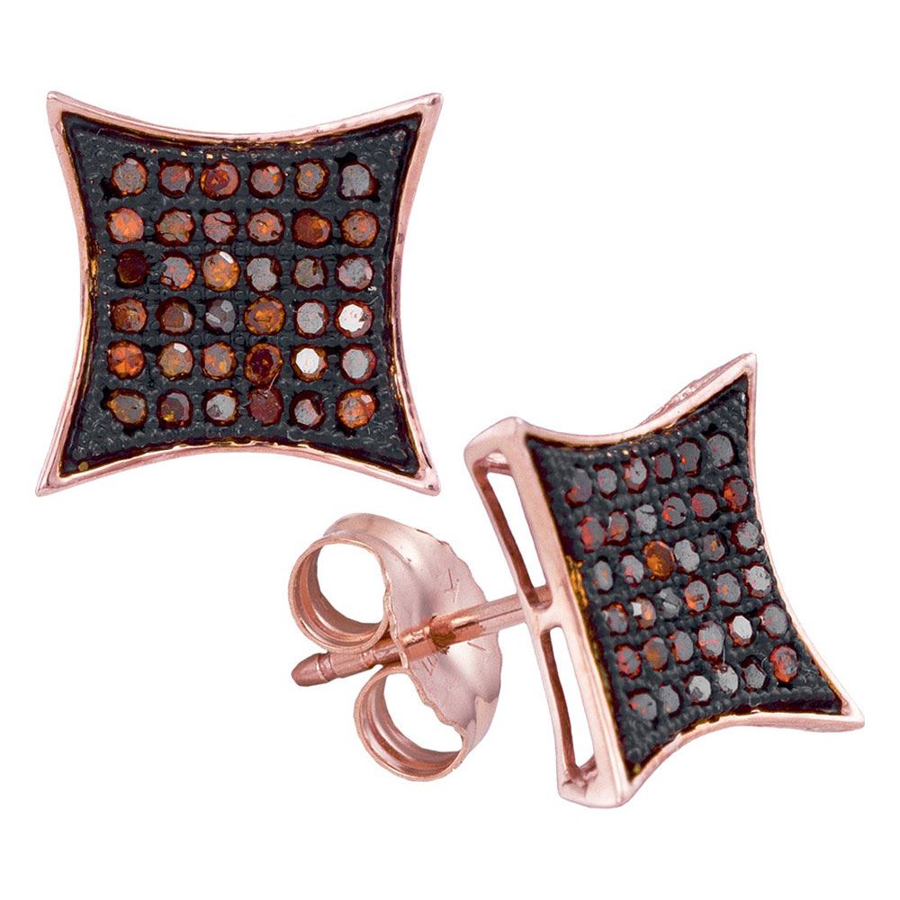 REF-22F4N- SKU: GD93592 ---- 0.20 CTW Red Color Diamond Square Kite Cluster Earrings 10KT Rose Gold