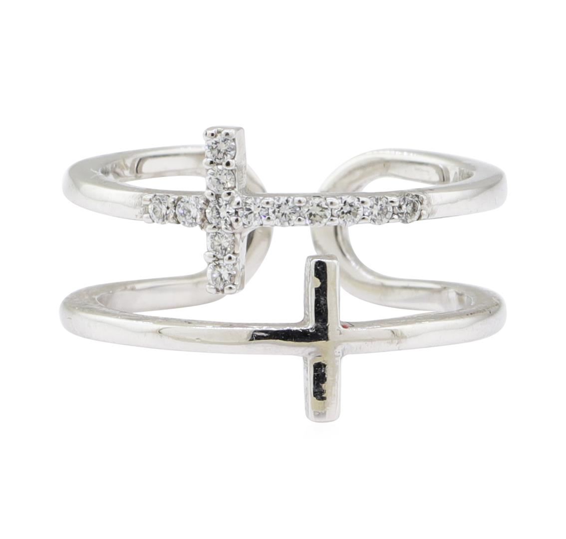 One double cross motif toe cuff ring featuring: 14KT white gold weighing 2.6 grams containing diamonds weighing 0.20ctw.