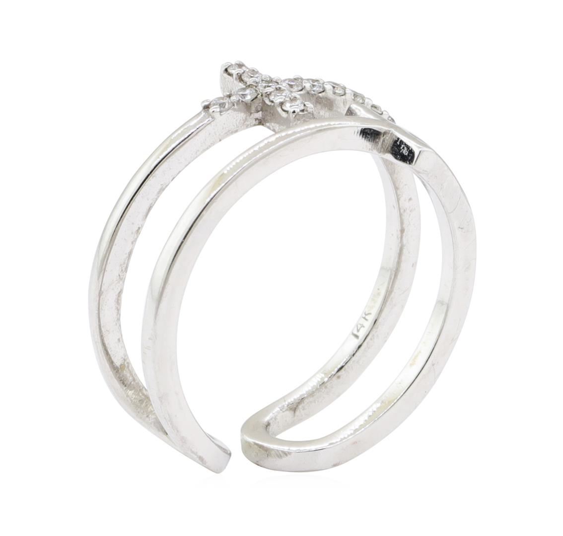 One double cross motif toe cuff ring featuring: 14KT white gold weighing 2.6 grams containing diamonds weighing 0.20ctw.