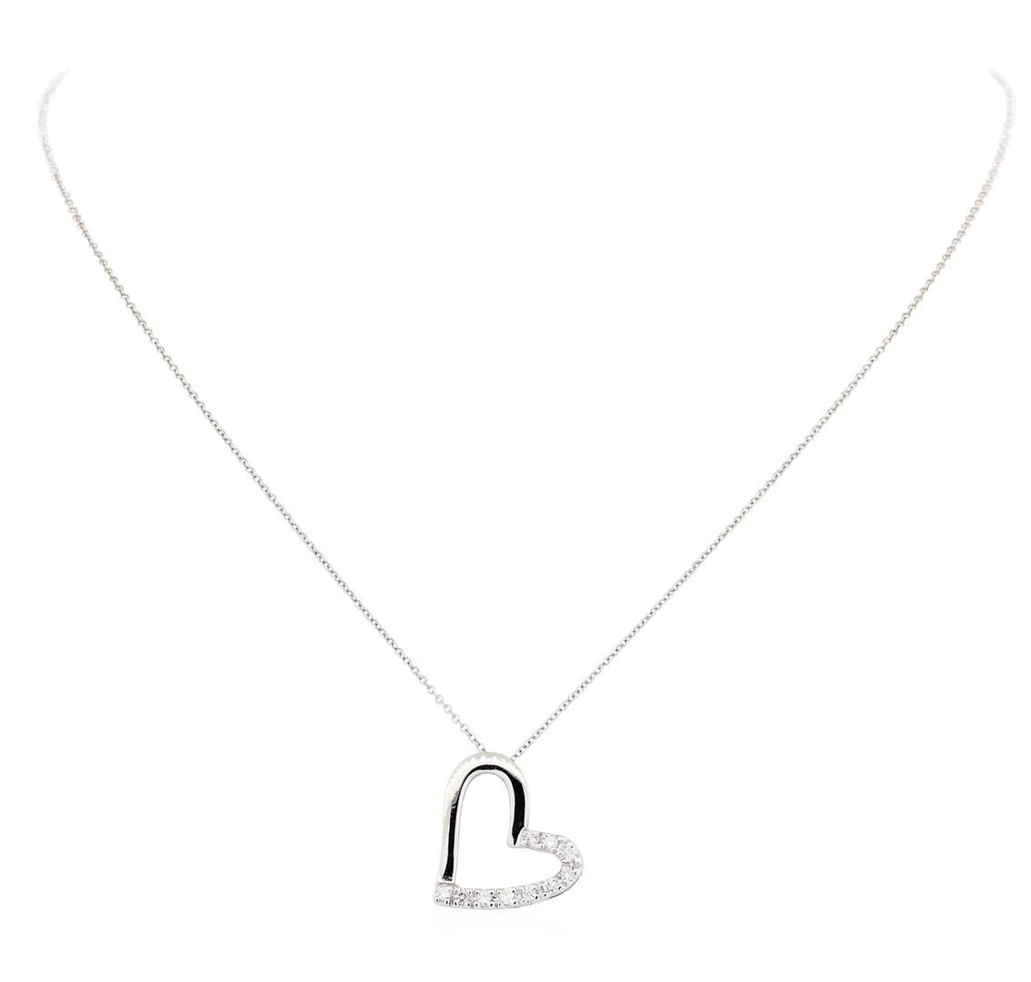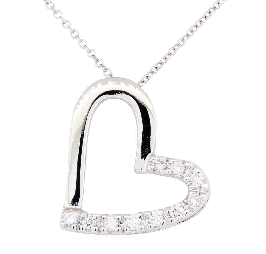 One lady's heart shaped pendant featuring: a sixteen inch 14KT white gold chain attached to an 18KT white gold pendant weighing 3.5 grams containing diamonds weighing 0.20ctw.