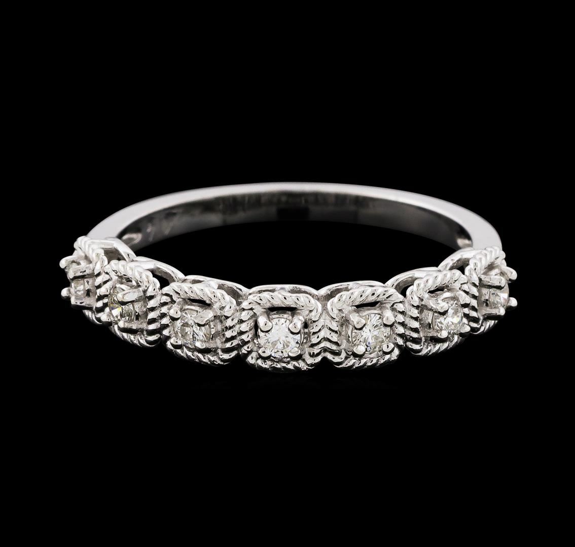 One Diamond Ring featuring: 14KT White Gold with a total weight of 2.13 grams and 7 Diamonds with a total weight of 0.20ctw.