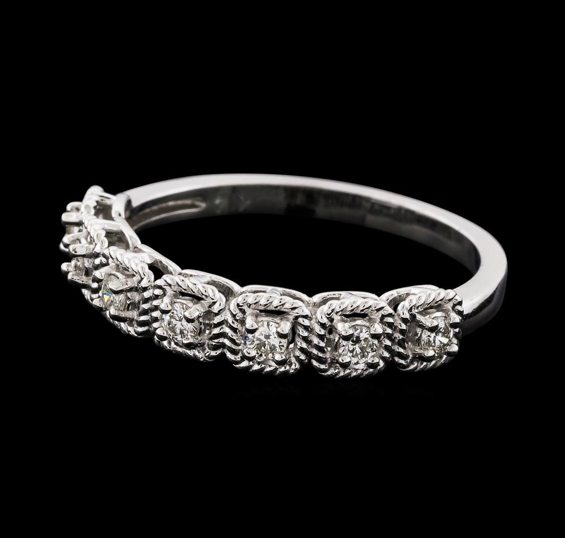 One Diamond Ring featuring: 14KT White Gold with a total weight of 2.13 grams and 7 Diamonds with a total weight of 0.20ctw.
