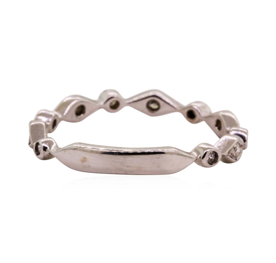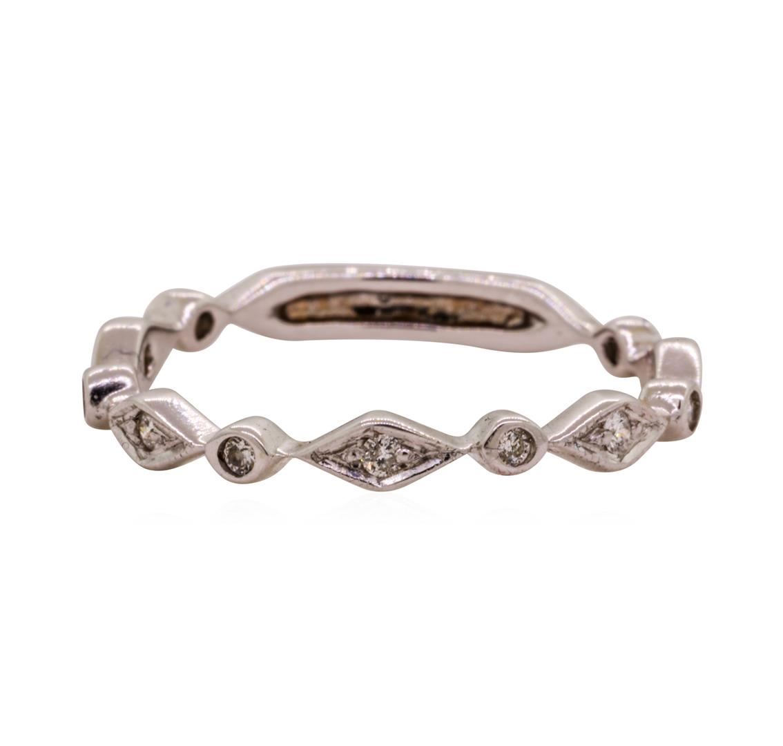 One lady's ring with a straight line, multi-shaped motif featuring: 14KT white gold weighing 1.5 grams containing diamonds weighing 0.20ctw.