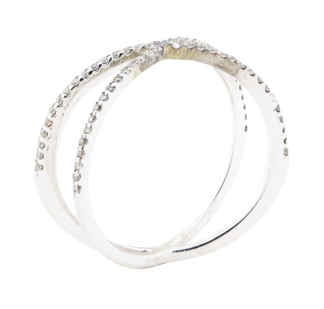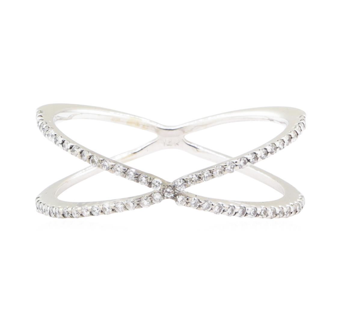 One crossover ring featuring: 14KT white gold weighing 2.4 grams containing diamonds weighing 0.20ctw.