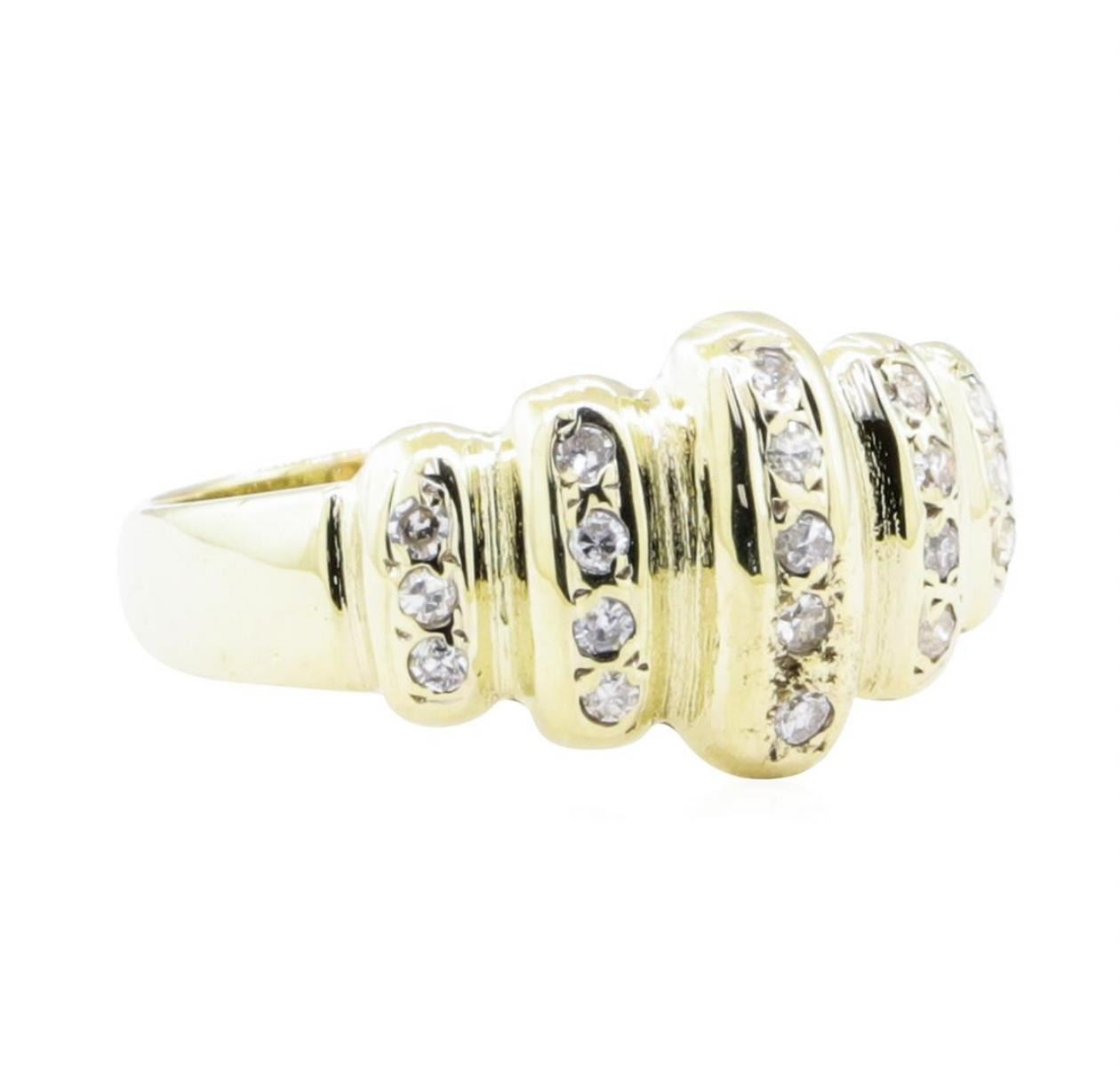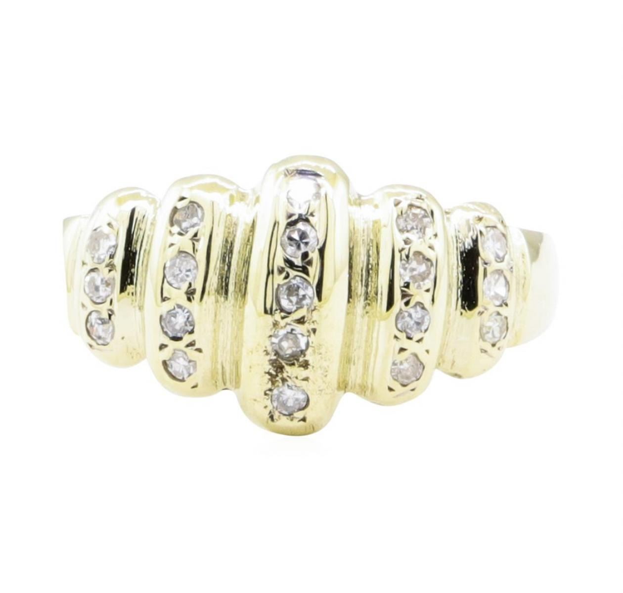 One five-row ring featuring: 14KT yellow gold weighing 3.9 grams containing single cut diamonds weighing 0.20ctw.