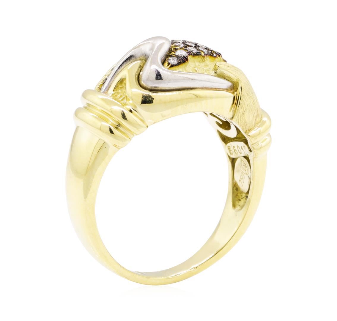 One lady's ring featuring: 18KT yellow gold and platinum weighing 10.4 grams containing diamonds weighing 0.20ctw.