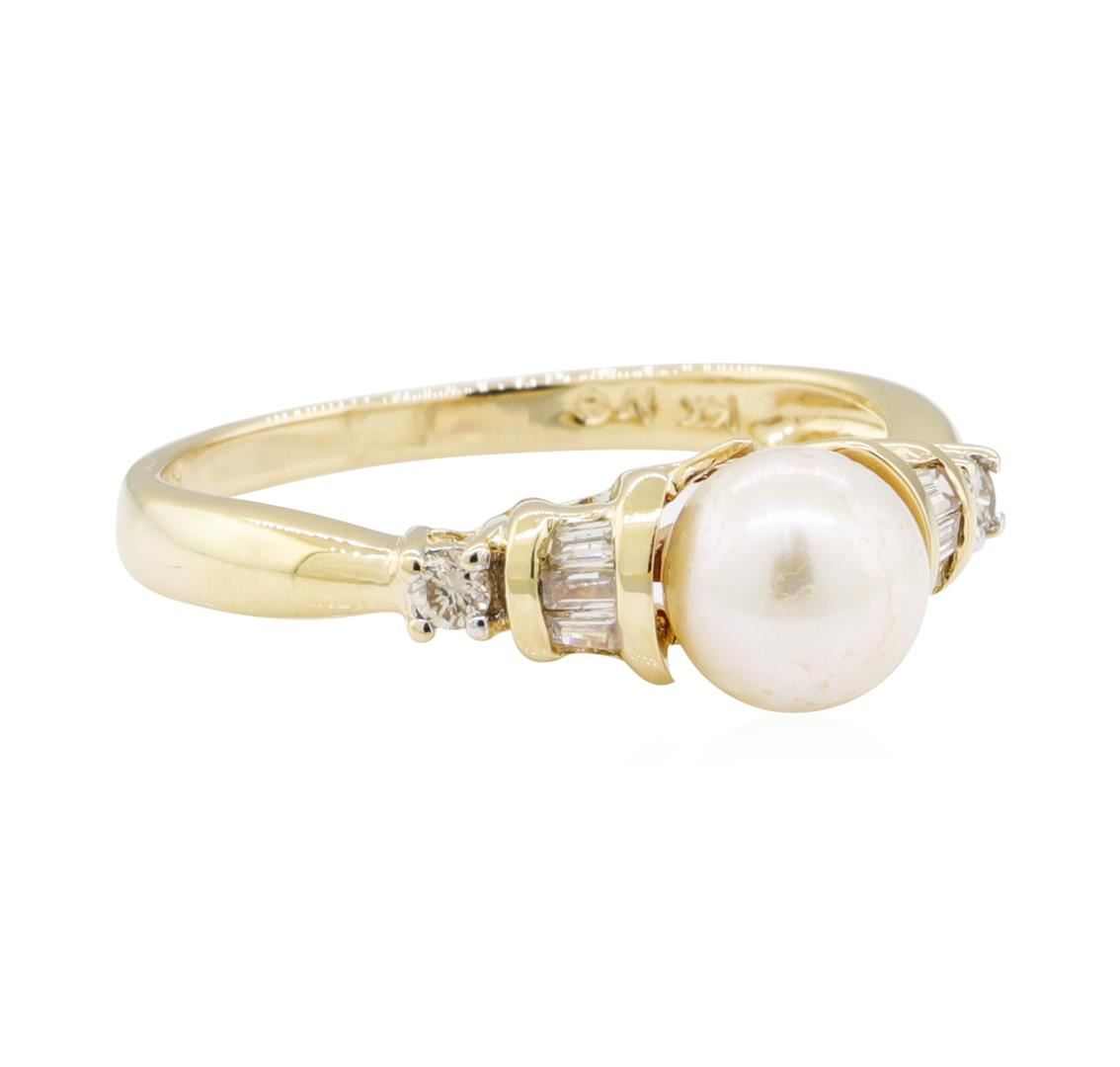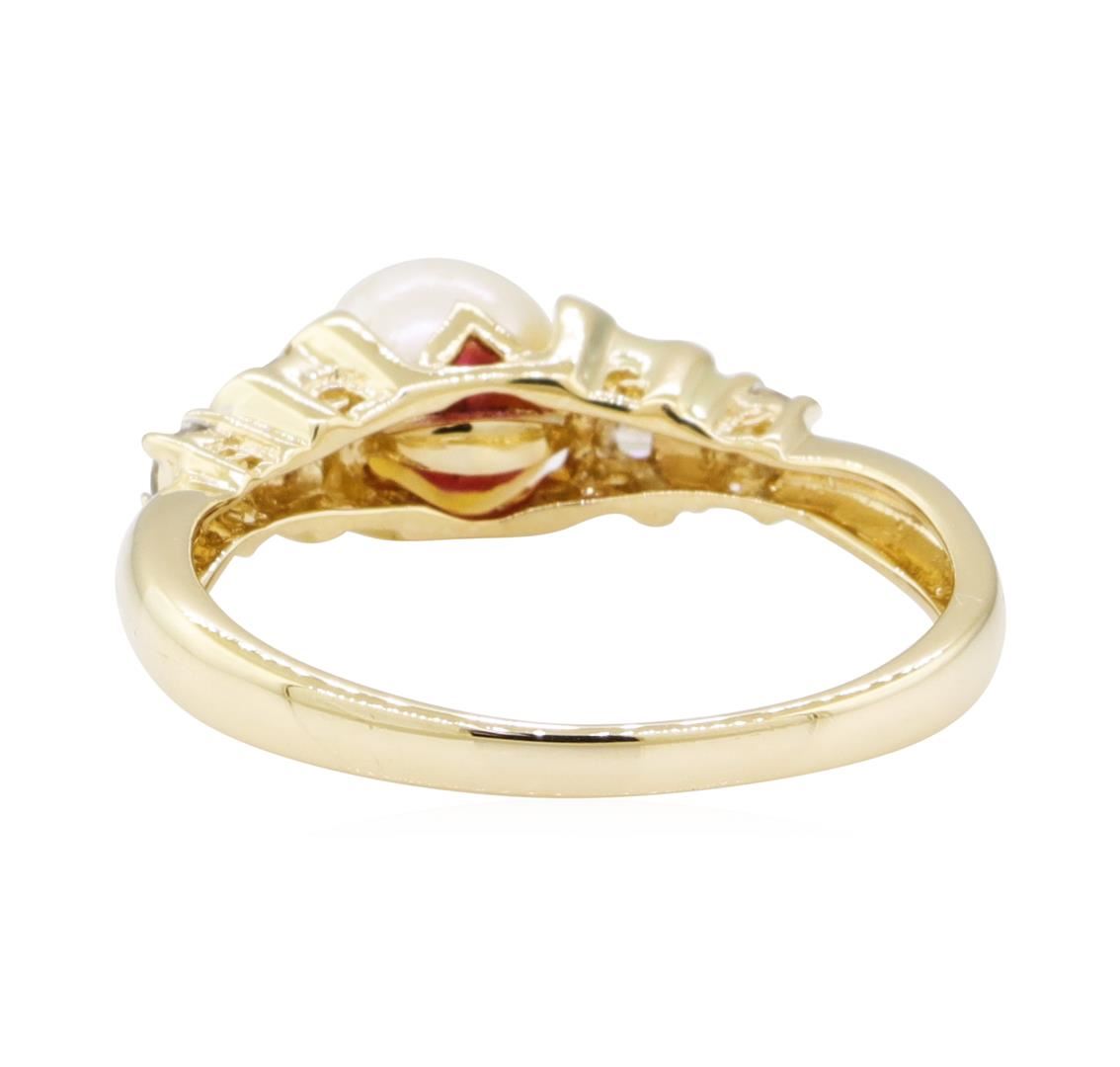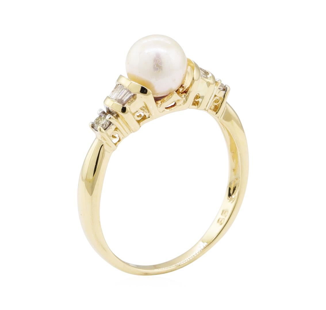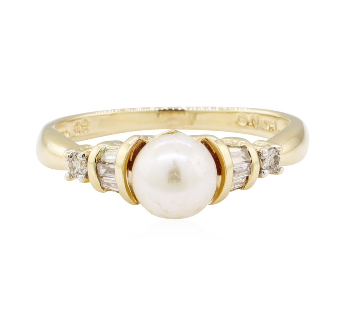One ring featuring: 14KT yellow gold weighing 2.8 grams containing one pearl and diamonds weighing 0.20ctw.