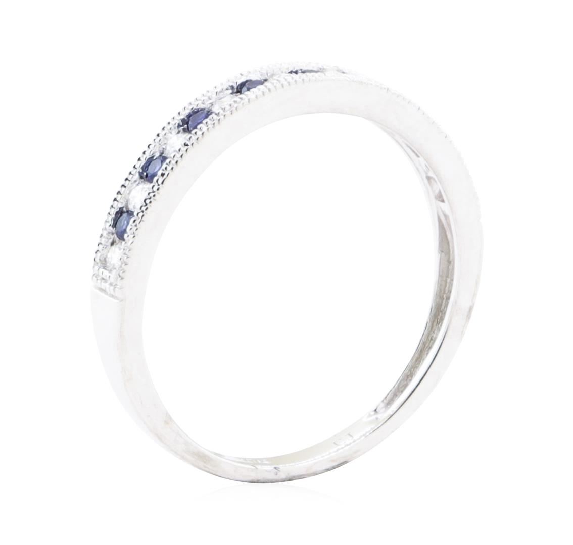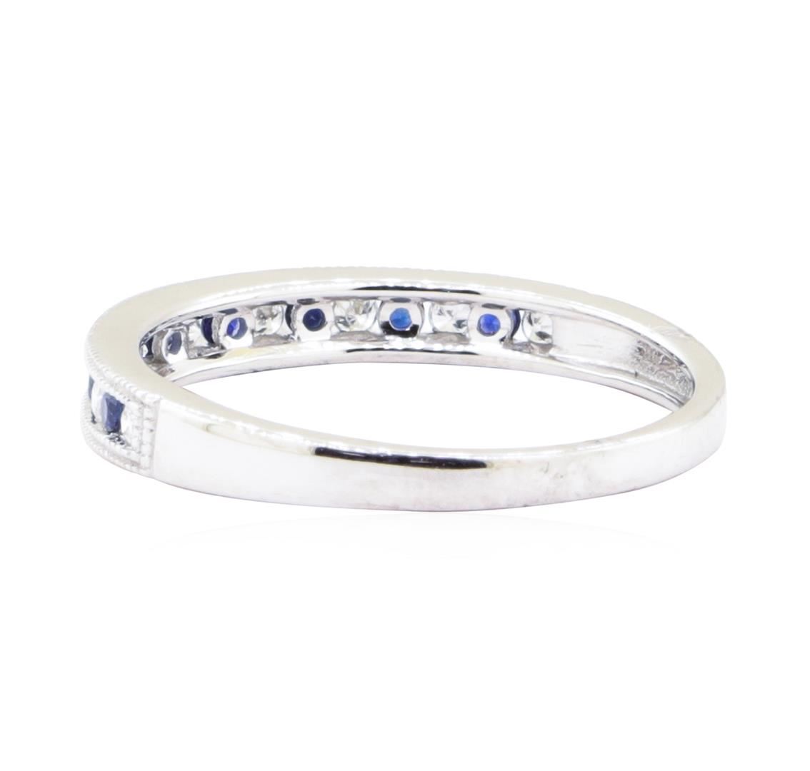 One straight-line double milgrain band featuring: 10KT white gold weighing 1.8 grams containing sapphires and diamonds weighing 0.20ctw.