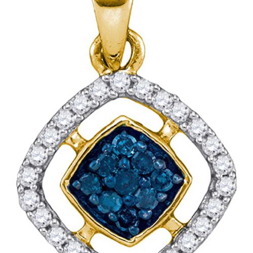REF-12M2R ---- 0.20CTW White and Blue Diamond Micro-Pave 10KT Pendant Yellow Gold - SKU: GD 89036