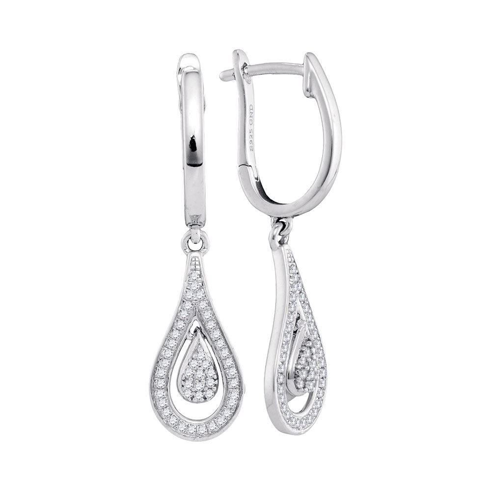 REF-31W4K- SKU: GD98311 ---- 0.21 CTW Diamond Cluster Teardrop Dangle Earrings 10KT White Gold