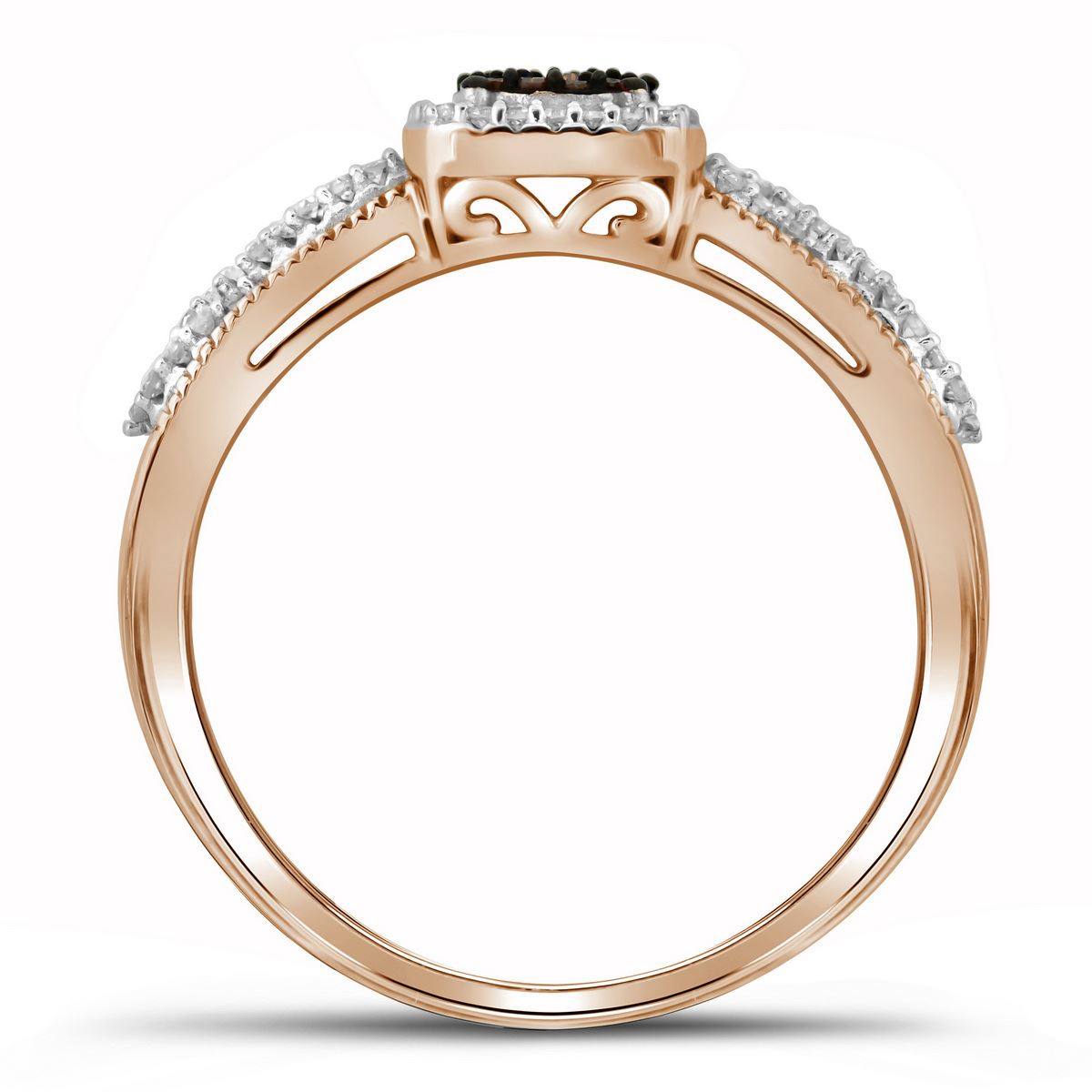 REF-22X4Y- SKU: GD98539 ---- 0.21 CTW Red Color Diamond Square Cluster Ring 10KT Rose Gold