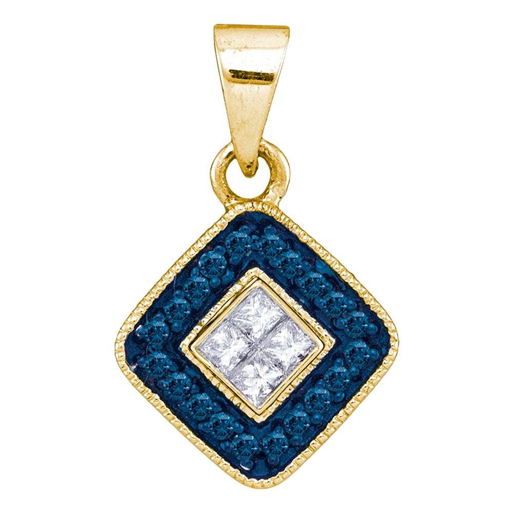 REF-14W9K- SKU: GD88696 ---- 0.22 CTW Blue Color Diamond Diagonal Square Pendant 10KT Yellow Gold