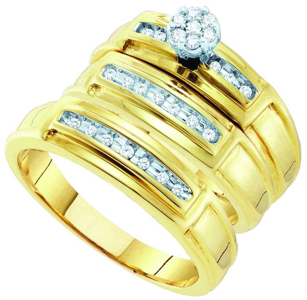 REF-66V2T ---- 0.22 CTW Diamond Cluster Matching Trio Bridal Engagement Ring 10K Yellow Gold - SKU: GD55164