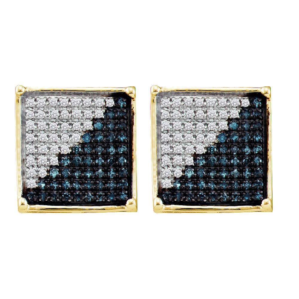 REF-13K4W- SKU: GD55067 ---- 0.22 CTW Mens Blue Color Diamond Square Cluster Earrings 10KT Yellow Gold