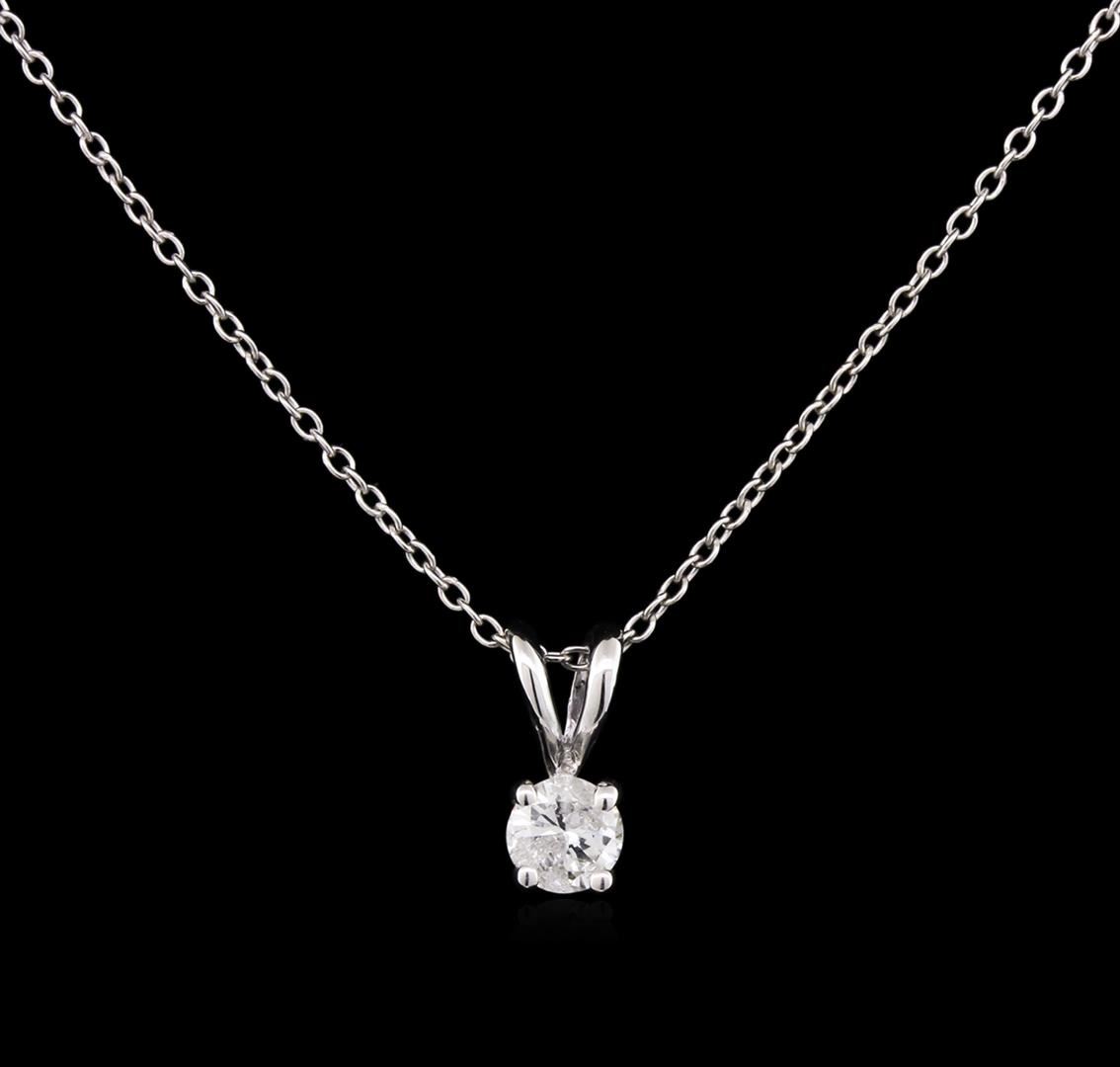 One solitaire pendant with chain featuring: 14KT white gold weighing 1.37 grams containing one diamond with a total weight of 0.22ct.